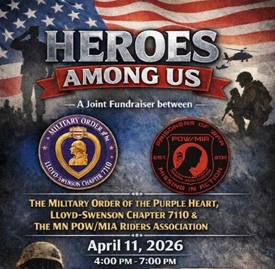 This fundraiser is put on by the Minnesota POW/MIA Riders Association and will be at the Whitlock-Sonnenberg VFW in Rochester, MN On April 11th.